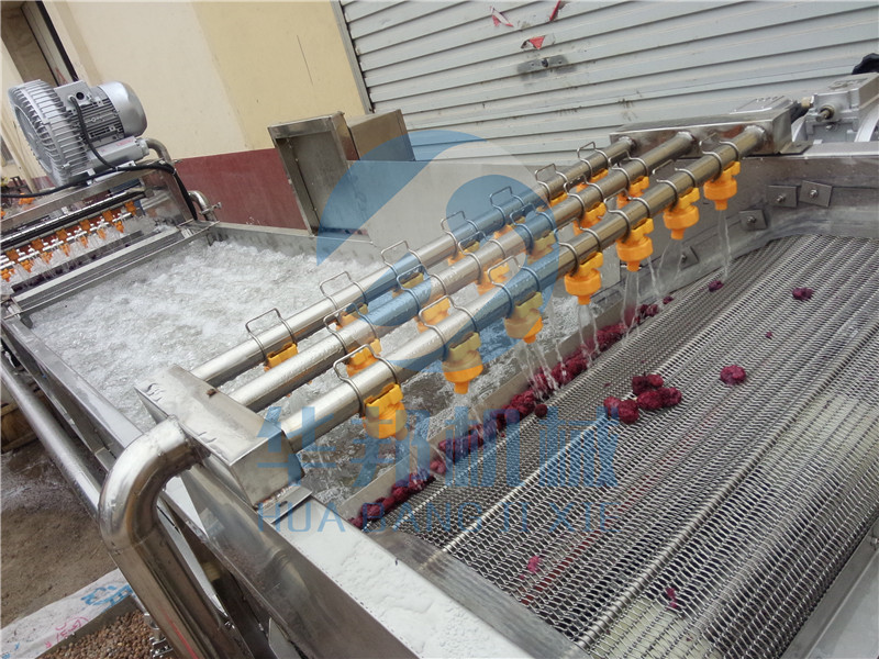 (1)本設(shè)備采用氣泵鼓泡的形式形成氣浪,主要用于產(chǎn)品表面的清洗。采用大功率、低噪音的氣泵,清洗水溫為常溫,有效的保護(hù)了物料本身的色澤和品質(zhì),效果更佳。
