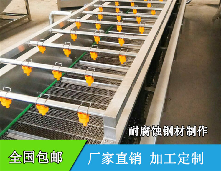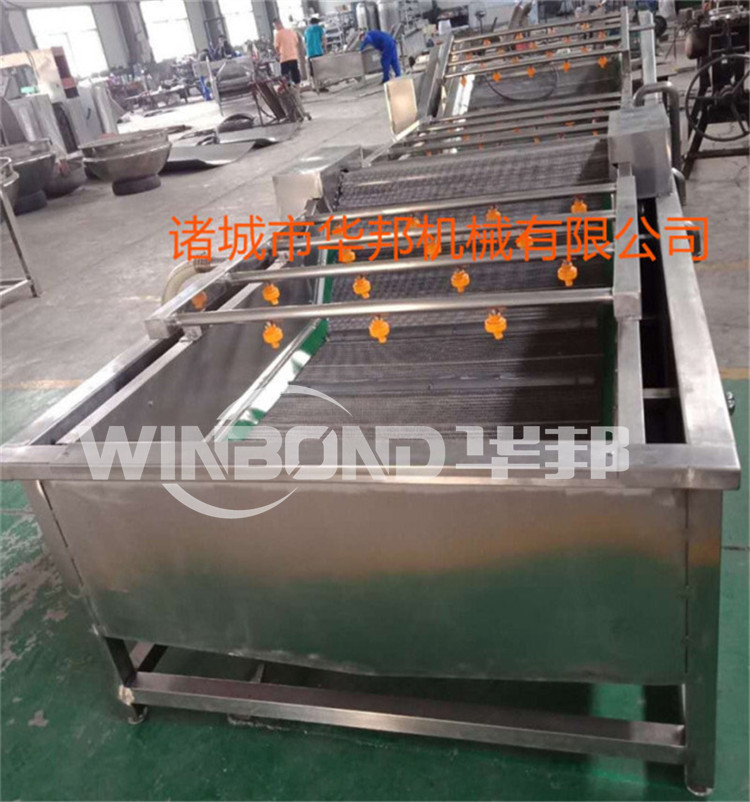 氣泡清洗機的原理主要是利用箱體前部分設備箱體中注適量的水,原料在經(jīng)過箱體時,會與氣泡機和水的結(jié)合作用下做翻滾狀態(tài),并隨網(wǎng)帶不斷向前推進,在出水面時,設有噴淋頭,高壓沖洗(即二次清洗)