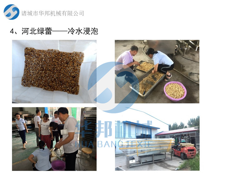諸城華邦生產(chǎn)的核桃仁去皮機,采用純物理清水滾筒去皮,滾筒內壁采用光滑的結構面,減少了和核桃仁的摩擦,減少了破損率,而且清洗效率高,產(chǎn)量大,一臺小型脫皮機頂10人手工剝皮。