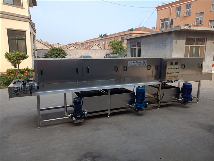 1.預(yù)清洗階段:筐子首先通過輸送系統(tǒng)進(jìn)入漂洗段,用高壓熱水進(jìn)行預(yù)清洗。