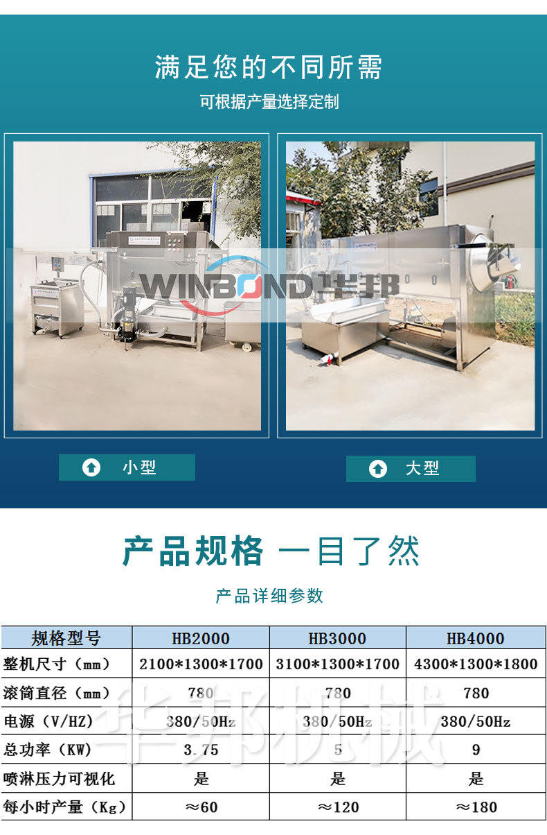 采用純物理清水去皮,滾筒式設計,0添加