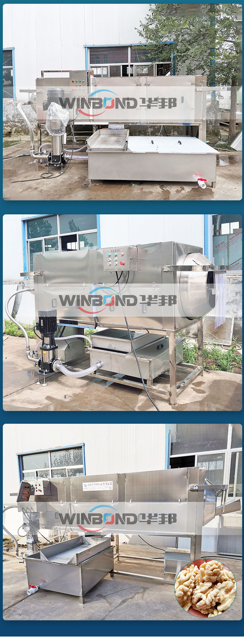 諸城華邦機械精心研究了并研發(fā)了核桃仁物理去衣技術和生產設備,物理脫皮技術且設備可以去掉不同品種核桃的技術,采用純物理清水去皮,完整率99%以上,大幅度提高生產效率